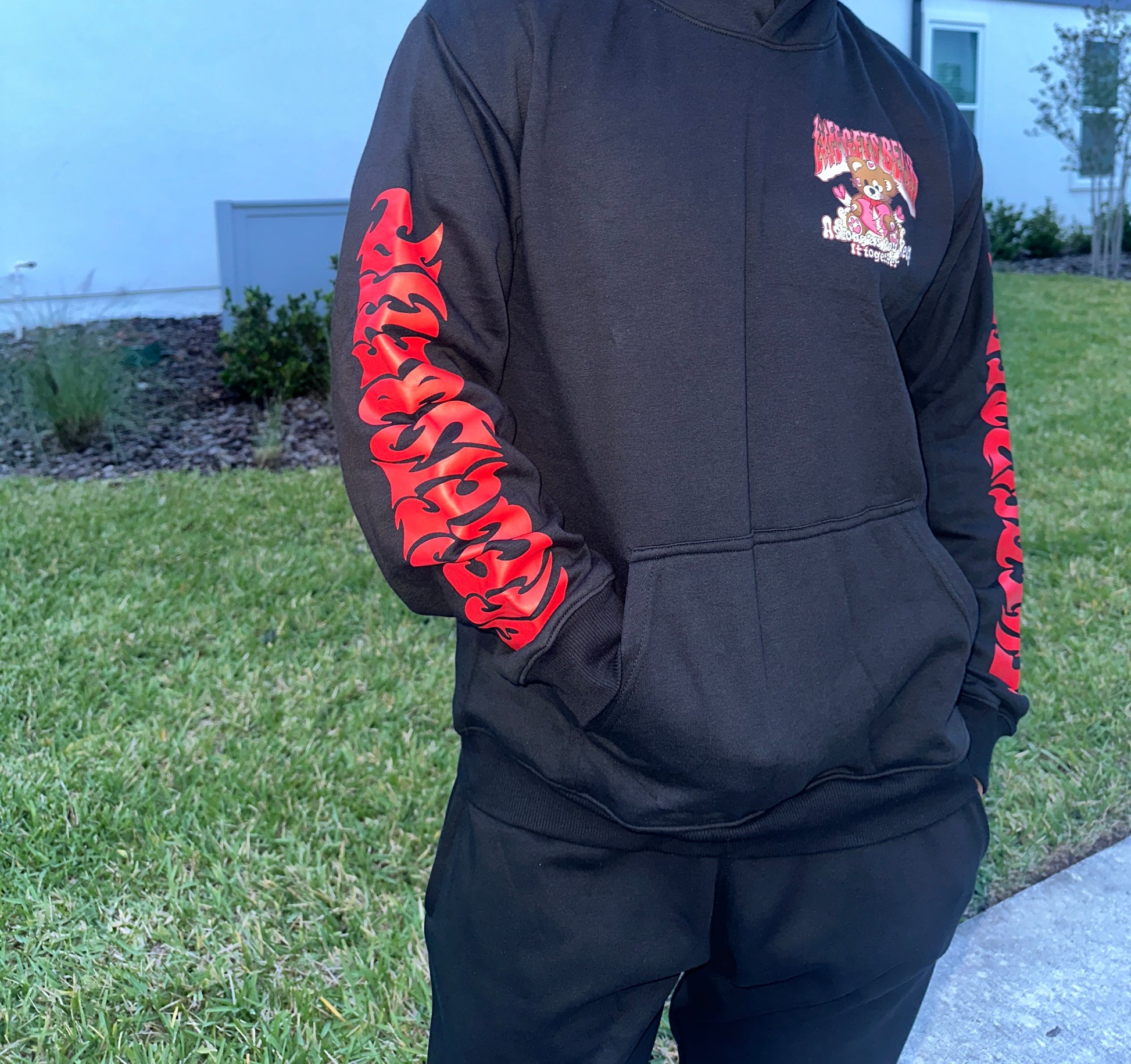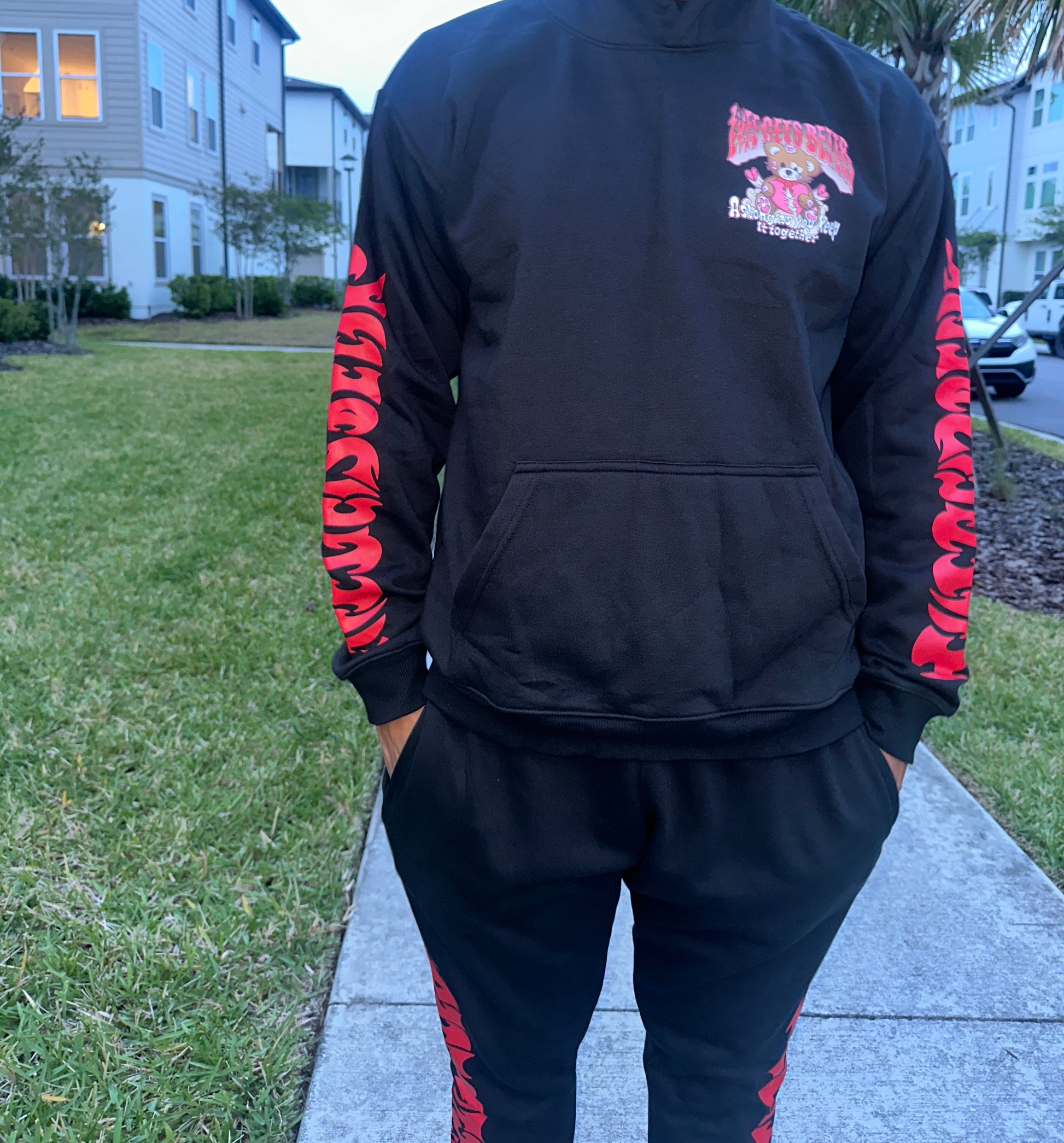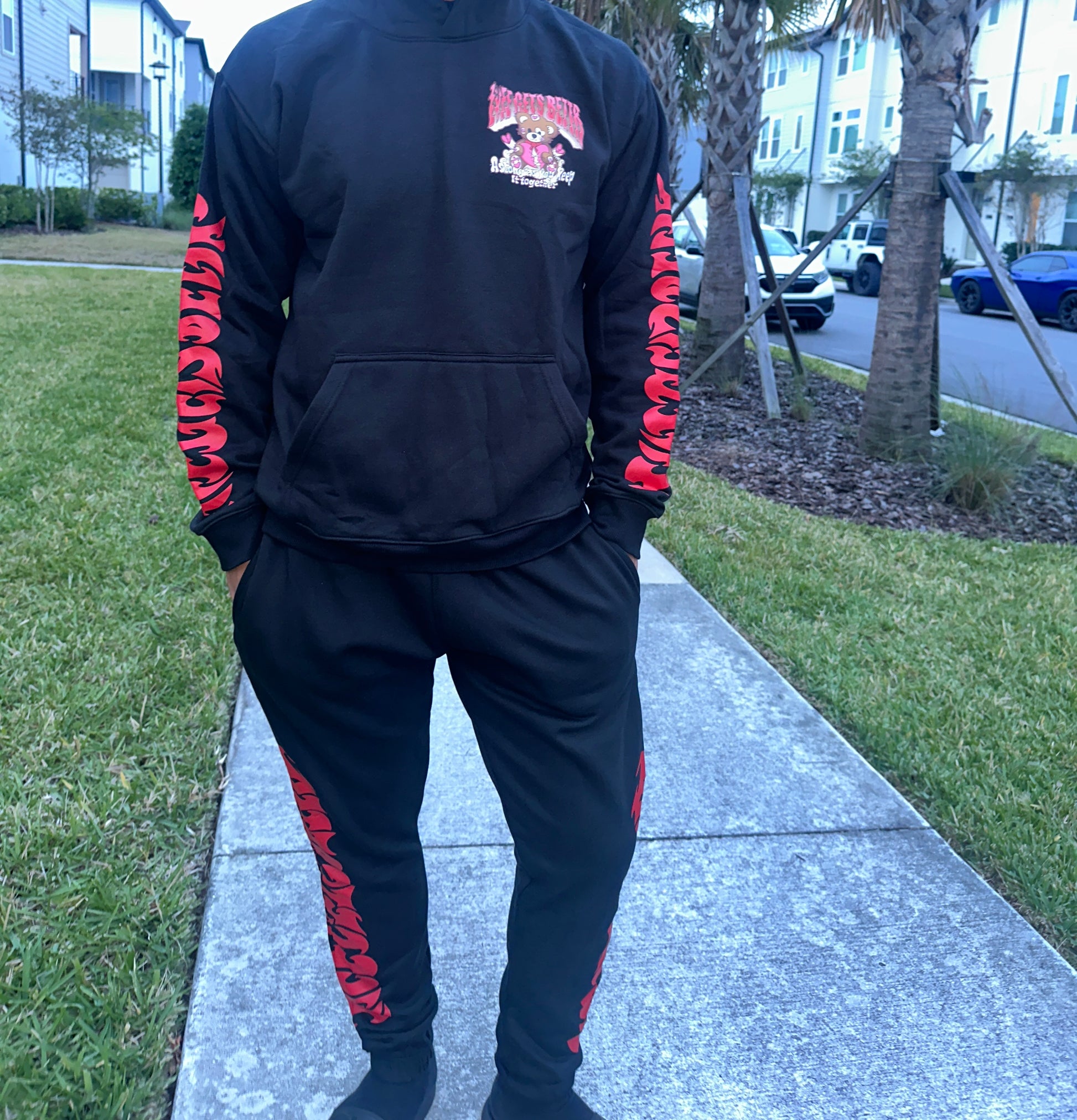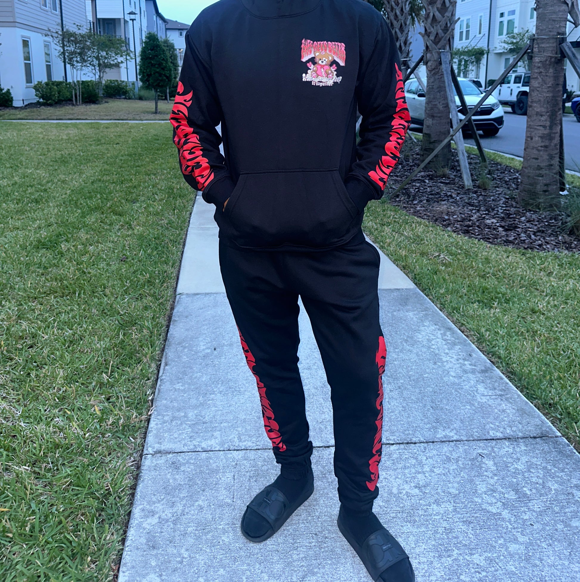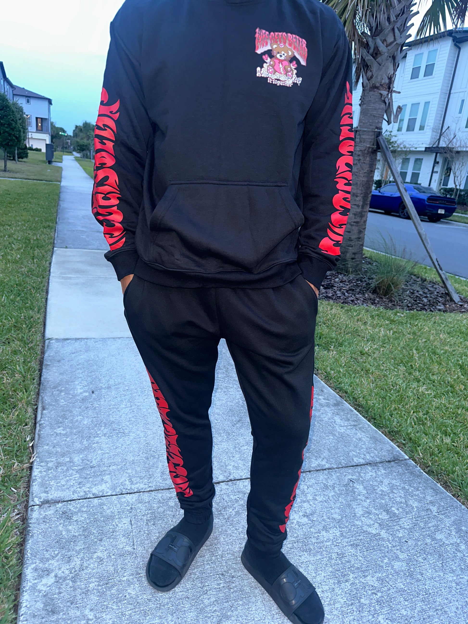 Lyfe Gets Bettr Black & Red Sweat Suit (Sold Separately)